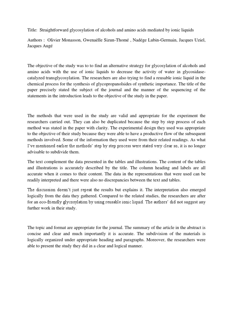 Make a judgment of the work's worth or value No matter what your major is, you will probably be expected to write a critique paper at some point. How to critique a film's plot A succint summary is provided in the first paragraph. Key elements of any film. With so many websites providing academic help, you can easily find some solid paper examples as the background for your own work. An introduction, summary, critique, and conclusion. The content of the paper is right on track. A standard article critique consists of four parts: Apr 06, 2021 · critique papers require students to conduct a critical analysis of another piece of writing, often a book, journal article, or essay. Below in this section, you'll find these elements' descriptions and useful tips on analyzing them in your paper. We would like to show you a description here but the site won't allow us. Article critique samples and examples are a good opportunity to make the writing process faster and simpler.
